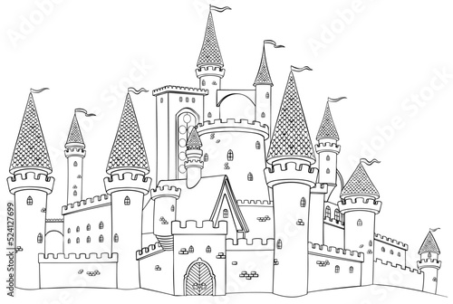 book, castle, clip art, colouring, cute, element, illustration, outline, palace, preschool, vector, building, architecture, mediaeval, tower, fantasy, fairy, fairy tale, princess, kingdom, town, city