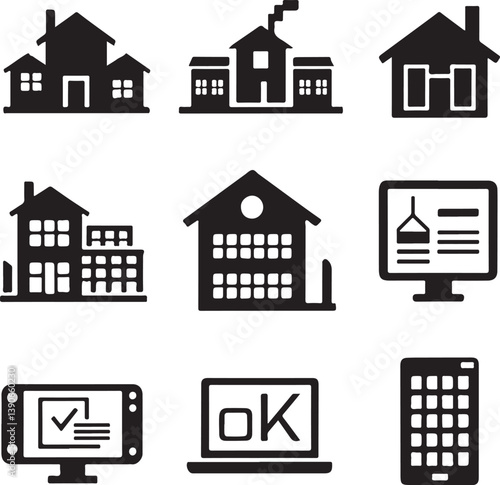 icon, set, icon, vector, symbol, signs, business, illustration, travel, hotel, black, computer, web, design, collection, money, book, silhouette, office, food, house, home, building, phone, cyberspace, music, electronic mail, contact, flower, pattern, vintage, nature, floral, leaf, art