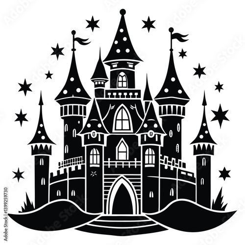 castle, vector, cartoon, house, illustration, building, mediaeval, tower, architecture, fantasy, fairy tale, fairy, princess, town, home, fortress, old, palace, tale, art, city, kingdom, village, design, flag