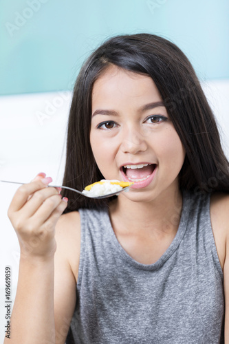 girl, teenage, eating, spoon, young, breakfast, food, healthy, female, meal, white, bowl, woman, teenage, happy, eat, portrait, morning, beautiful, cream, teenage, cereal, lifestyle, ravenous, background, home, fruit, energy, smile, pretty, youth, nourishment, diet, looking, cheerful, person, cute, caucasian