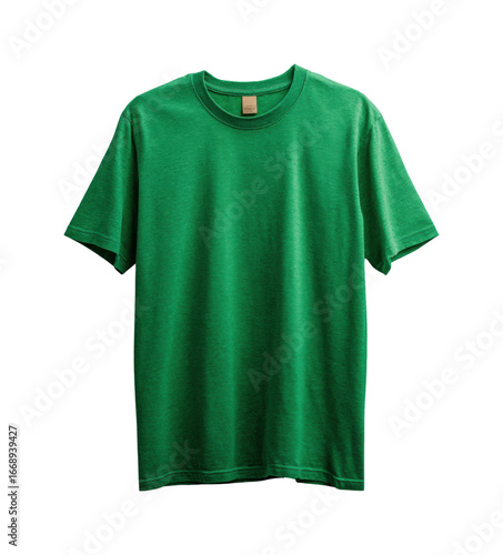 Casual wear display modern retail store green t-shirt fashion environment front view isolated on transparent background, png
