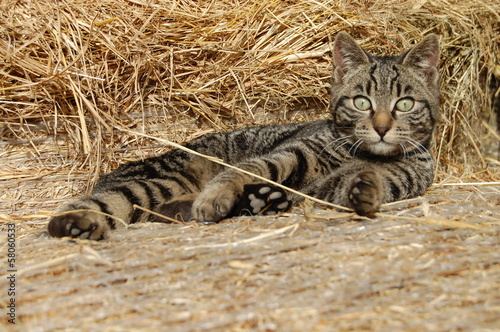 cat, domestic, hay, cat, animal, farm, lying, ear, sun