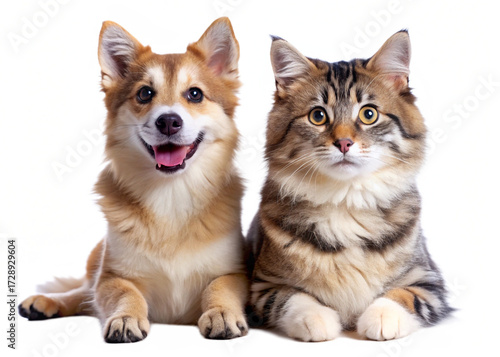 Cat and dog on white background