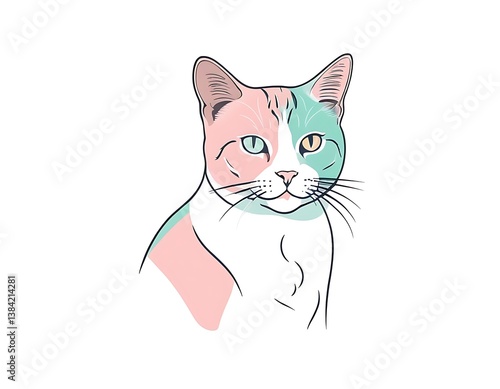 Cat art in a white background, pastel colors illustration