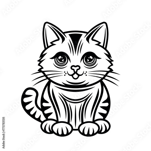 Cat cartoon character vector illustration in black monochrome style isolated on white background