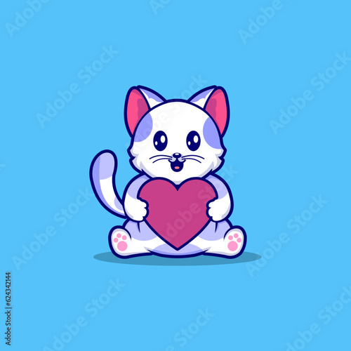 Cat cartoon vector icon, Cute and happy cat with love vector illustration isolated