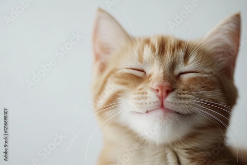 cat. small smiling, native, smile. on a white background close-up. playful mood