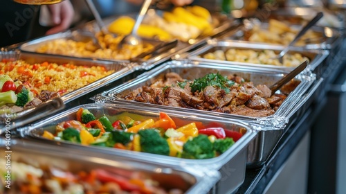 Catering buffet food in restaurant or cafe with meat and vegetables.