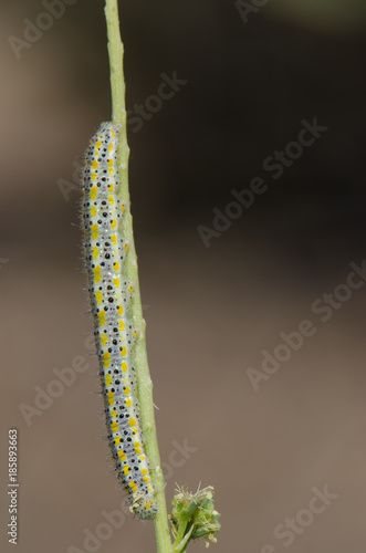 Caterpillar of a Canary Islands large white (Pieris cheiranthi). Pajonales. Integral Natural Reserve of Inagua. Tejeda. Gran Canaria. Canary Islands. Spain.