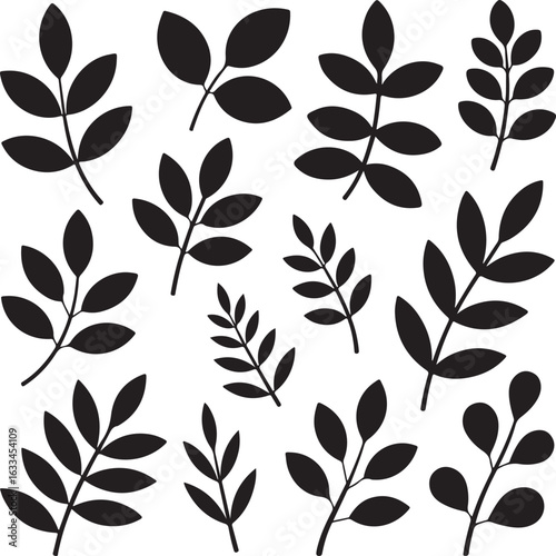 leaf, leaf, tree branch, foliage, plant, nature, botanical, silhouette, black-and-white, vector, graphic, design element, flora, growth, natural, outdoors, simple, clean, graphic design, illustration, drawing, pattern, organic, greenery, flora, stem, twig, deciduous, artistic, decorative