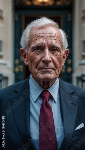 Caucasian elderly guy politician outside government office background