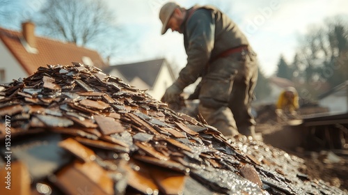 caucasian, male, adult, working, shingle, outdoors, construction, labor, roof, repair, sharpened, background, autumn, house, renovation, sunlight, morning, tool, rural, home, men at work, building, yard, equipment, industrious, project, carpenter's shop, hard hat, safety, brown, protective, uniform, manual, task, site, craftsmanship, hammer, seasonal, timber, daytime, hook, rustic, maintenance, dedicated, effort