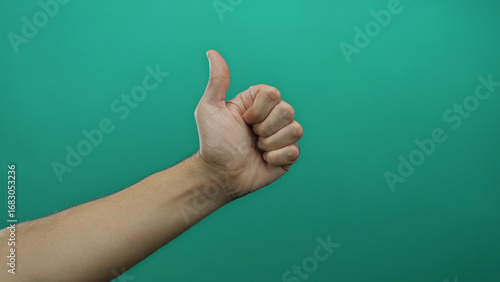 hand, thumb, up, gesture, green, isolated, background, caucasian, man, approval, positive, signal, agreements, success, ok, happy, finger, fist, signs, symbol, yes, emotion, communication, expression, motivation, like, support, affirmation, raise, show, demonstrate, praise, pointing, encourage, validate, handshake, victory, pride, confidence, assertive, enthusiasm, gain, trust, male, human