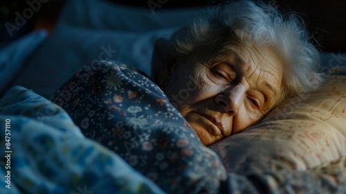 Caucasian old woman struggling to sleep at night