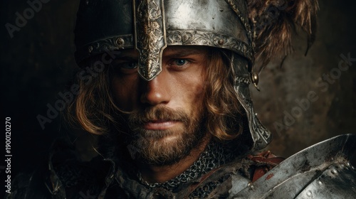 knight, armoring, mediaeval, helmet, male, caucasian, young, intense, expression, warrior, historical, battle, portrait, soldier, noble, combat, protection, suit, metal, bearded, long, hair, serious, focused, gaze, traditional, ornate, intricate, costume, history, brave, fierce, powerful, defense, chivalry, era, age, strength, knightly, look, stare