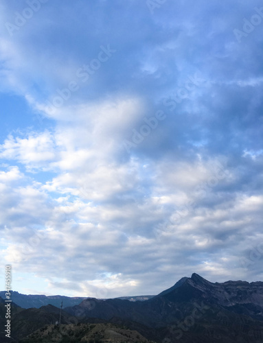 Caucasus mountain against the blue sky. Dagestan. Trees, rocks, mountains. Mountain landscape