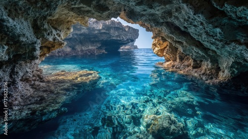 cave, turquoise, sunlight, clear, coastal, rock, ocean, sea, water, blue, formation, coast, underwater, nature, landscape, travel, vacation, summer, geology, scenic, horizon, exploration, adventure, tour tourism, natural, beauty, tranquil, calm, marin, environment, paradise, destination, idylli, cave, cavern, seascape, open