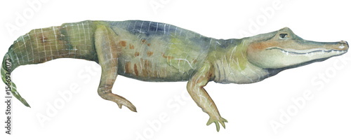 caiman, caiman, crocodile, reptile, watercolor, wildlife, green, wild animal, predator, hand-painted, cut-out, isolated, hi-res, printable, clip art, design element, poster, natural history, educational, animal portrait, south america, amazon, artwork, camouflage