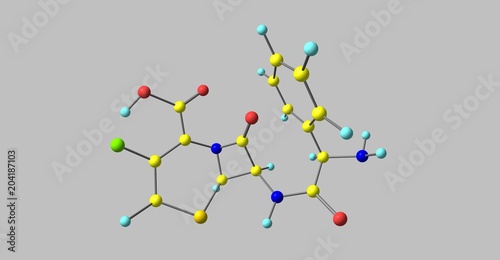 Cefaclor molecular structure isolated on grey