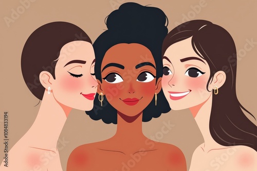 Celebrate Diversity and Friendship with This Vibrant Illustration of Three Women Embracing Unity and Sisterhood
