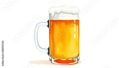 Celebrate St. Patricks Day with a Festive Watercolor Illustration of a Freshly Poured Beer Mug
