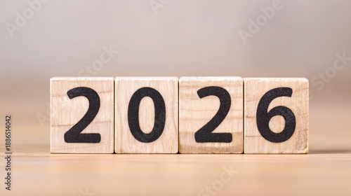 Celebrating new year 2026 with wooden blocks on neutral background - festive display