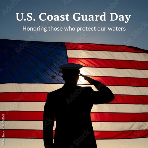 Celebrating U.S. Coast Guard Day Honoring Service Members Protecting Our Waters with a Patriotic American Flag Backdrop and a Saluting Silhouette