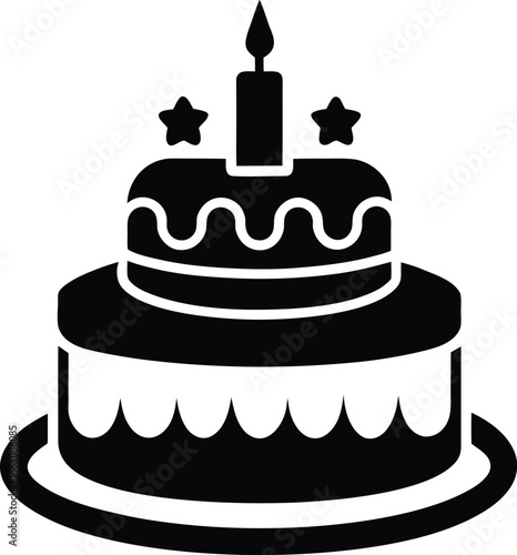"Celebration Cake Symbol – Festive Two-Tier Cake with Flame Candles"