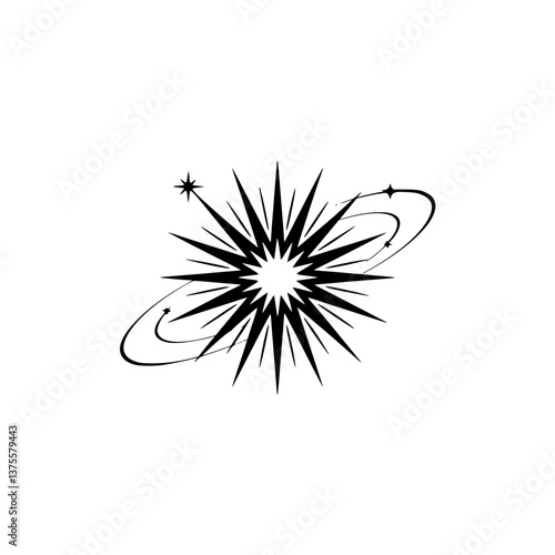 vector, star, burst, black, white, logotype, design, graphic, element, celestial, cosmos, orbit, space, astronomy, abstract, minimalist, modern, emblem, badge, illustration, geometric, sharp, angular, corporate, brand