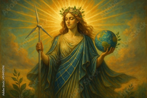 Celestial goddess of sustainability promoting environmental awareness and renewable energy advocacy