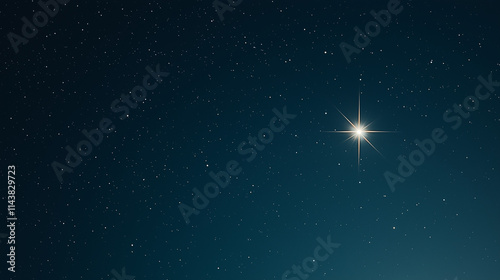 Celestial Guiding Light: A single star shines brightly in the night sky, its light cutting through the darkness, surrounded by a vast expanse of twinkling stars.