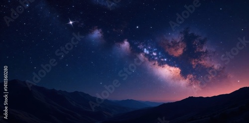 Celestial scene of a black starry sky with celestial objects, space, stars, cosmic