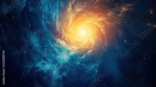 galaxy, nebula, spiral, cosmic, space, star, universe, celestial, astronomy, swirl, light, bright, dark, blue, teal, turquoise, gold, orange, yellow, vibrant, colours, dust, gas, cloud, energy, power, aglow, radiant, infinite, huge, mysterious, wonder, awe, beauty, night, sky, aethereal, majestic, pattern, formation, interstellar