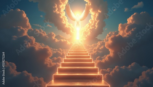 Celestial Stairs Leading to a Radiant Angelic Presence Amidst Glowing Clouds