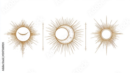 Celestial Sun and Moon Burst Designs: Golden Celestial Art