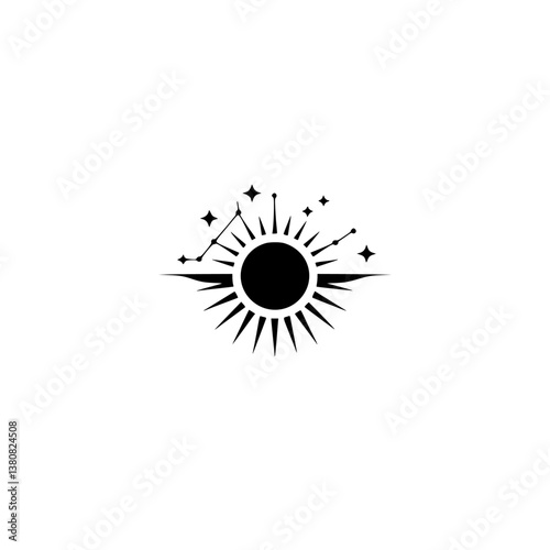 vector, sun, star, black, white, minimalist, celestial, astrology, astronomy, emblem, logotype, design, illustration, sunburst, cosmos, space, geometric, graphic, modern, simple, spiritual, tattoo, branding