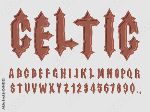 Celtic font. ancient alphabet. Set of letters and numbers. Old l