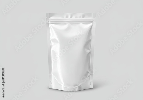 pouch, cardboard box, foil, white, blank, bag, container, product, design, template, clean, minimal, realistic, crease, wrinkle, texture, sealed, edge, crumpled, shadow, background, grey, isolated, object, soft, light, modern, display