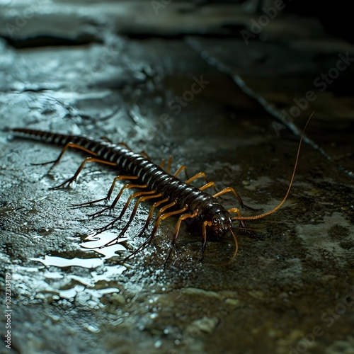 centipede, insect, arthropod, creature, animal, basement, floor, damp, crawling, leg, movement, sync, pest, concept, macro, nature, wildlife, invertebrate, underground, dark, texture, pattern, closeup, detail, environment, decay, decomposition, organic, industrial, gritty, moody, mysterious, creepy, crawly, vermin, creeping, ominous, unwanted