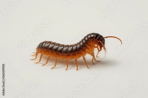 centipede, insect, crawling, white, background, studio, arthropod, leg, wildlife, invertebrate, animal, nature, macro, photo, closeup, detail, creature, pest, bug, fauna, segmented, body, antennae, small, brown, orange, royalty free, image, picture, illustration, vector, graphic, design, element, texture, pattern, art, science, education, biodiversity, zoology, entomology