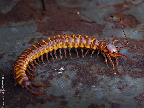 centipede isolated on metal background