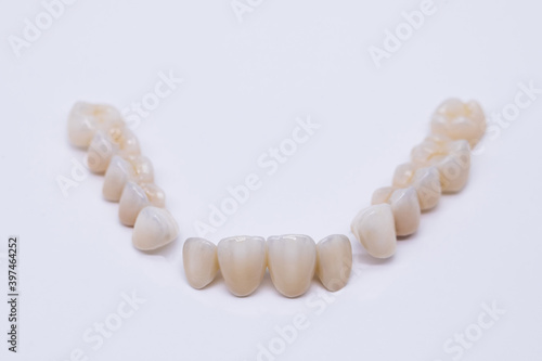 Ceramic zirconium in final version. Staining and glazing. Precision design and high quality materials. Metal Free Ceramic Dental Crowns.
