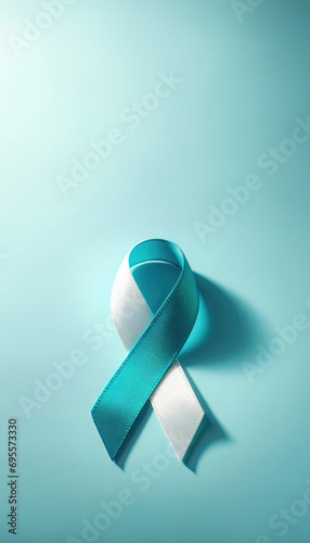 cervical, cancer, awareness, ribbon, symbol, teal, white, cervix, month, bow, support, hope, woman, disease, genetic, prevention, realistic, care, concept, life, medicals, oncology, solidarity, survivor, disease, treatment, medicine, badge, association, satin, national, international, campaign, blue, background, isolated
