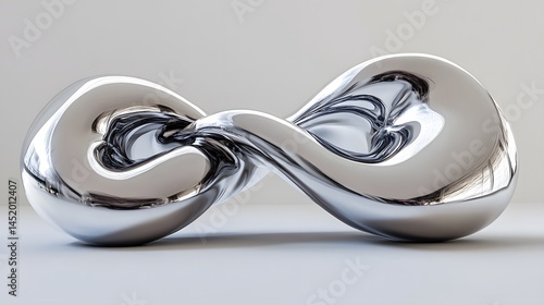 CG Metallic Abstract Sculpture: A twisted, metallic CG sculpture with reflective surfaces, standing out against a plain white background.