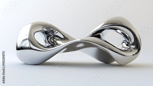 CG Metallic Abstract Sculpture: A twisted, metallic CG sculpture with reflective surfaces, standing out against a plain white background.