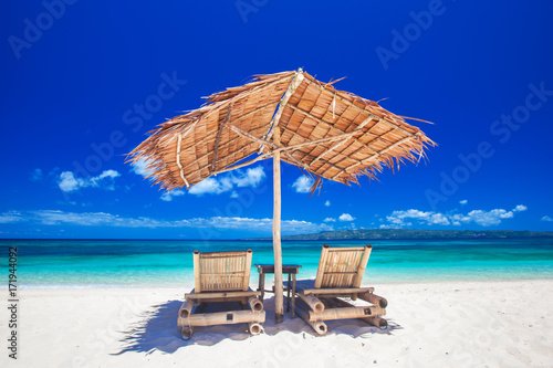 vacation, caribbean, sea, beach, chair, coast, beach chair, island, lounge, ocean, paradise, relax, relaxation, sand, sky, straw, summer, sunbath, travel, water, tropical, umbrella, parasol, beachfront, beautiful, blue, bonnet, calmness, chaise, dominican, empty, holiday, leisure, long, nobody, pair, pleasure, semitropical, sun tanning, 2, white