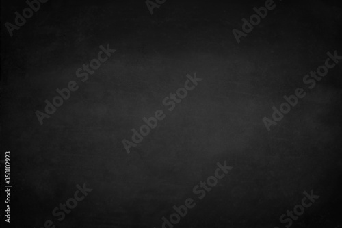 Chalkboard or black board texture abstract background with grunge dirt white chalk rubbed out on blank black billboard wall