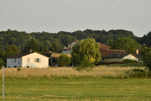 Champ de blé près des fermes en fin de journée au bourg de Champagne au Périgord Vert