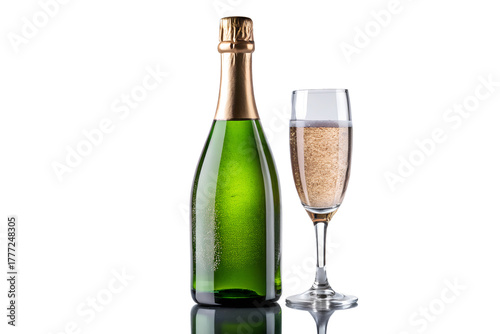 Champagne Bottle & Flute Glass Mockup | Sparkling Wine Bubbles PSD Template