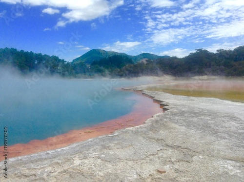 thermal, lake, landscape, water, nature, sky, mountain, river, blue, mountain, cloud, park, travel, hot, spring, summer, cloud, new zealand, national, beach, green, scenic, view